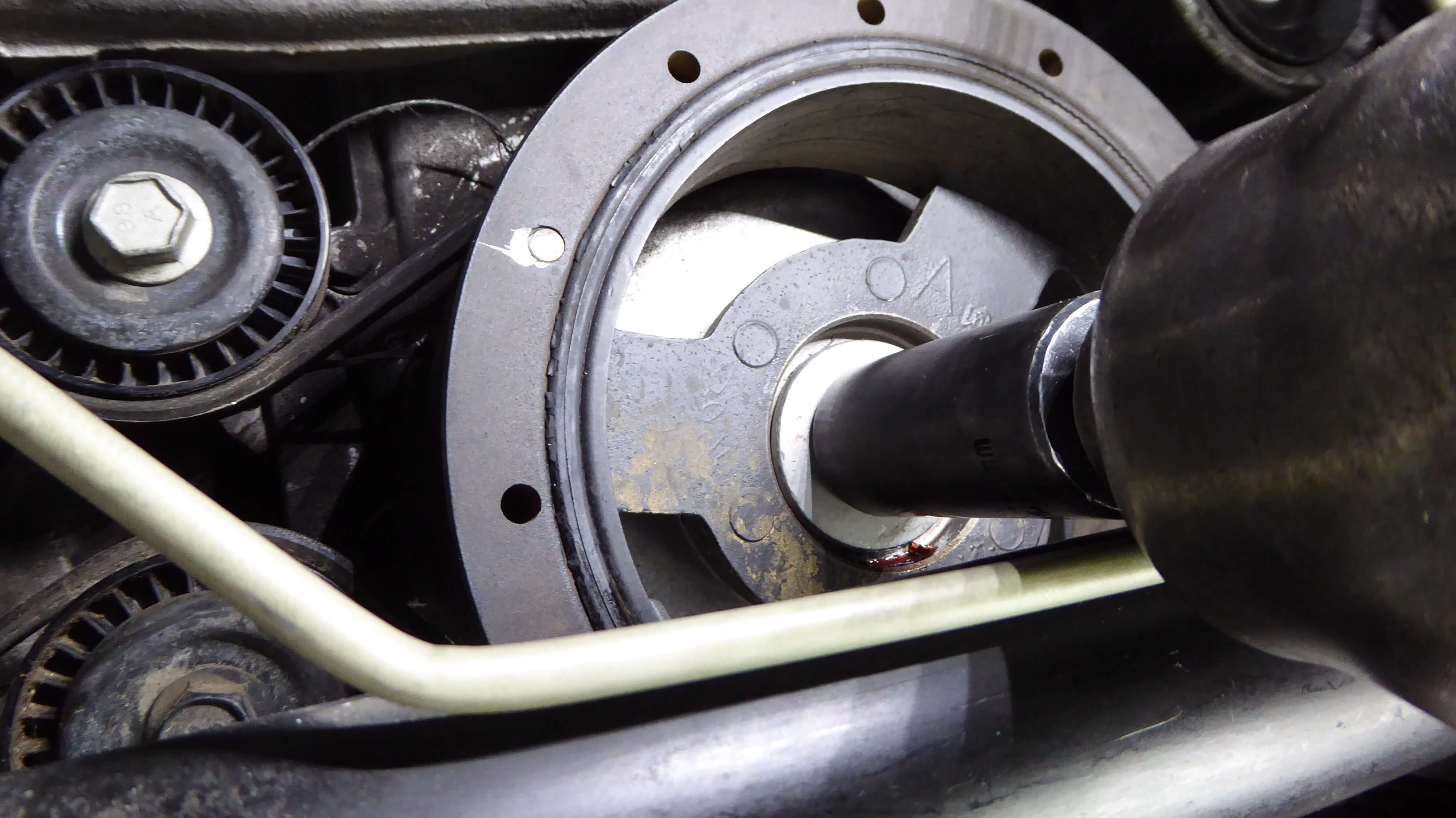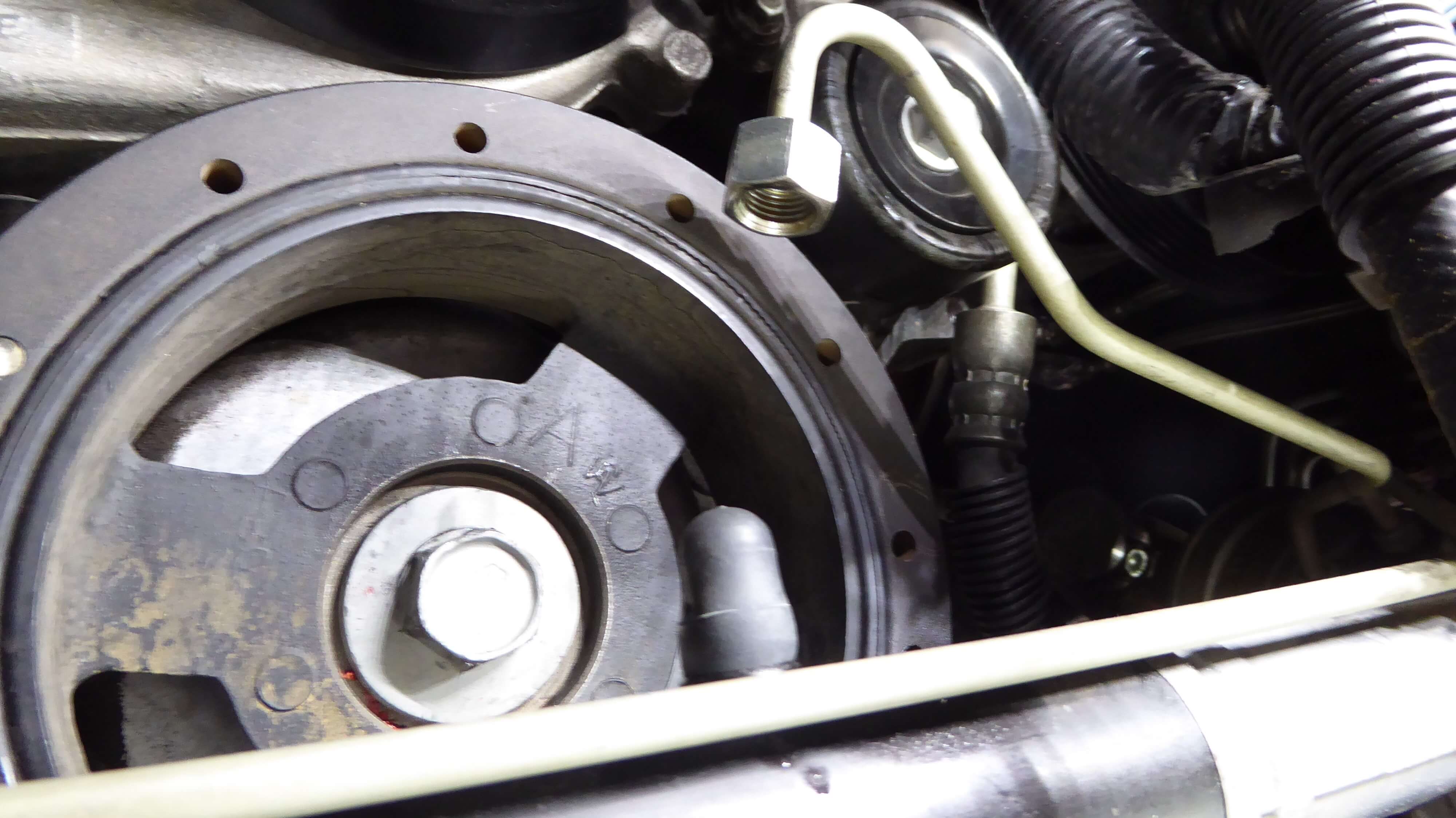 PINNING THE CRANKSHAFT PULLEY: THE STEERING RACK DOES NOT NEED TO BE REMOVED TO PIN THE CRANKSHAFT