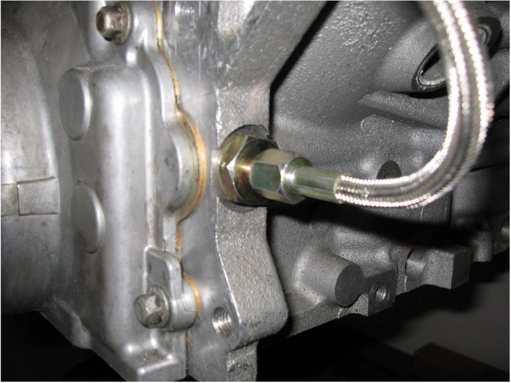 The preferred method of draining the oil from the supercharger to the sump is by cutting and tapping a 3/8” pipe fitting directly into the front of the oil pan.