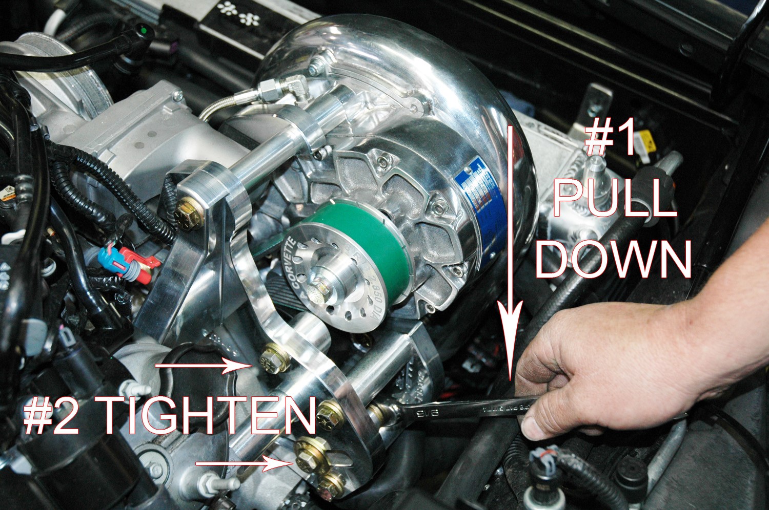 Proper installation of this supercharger kit requires general automotive mechanic knowledge and experience. Please browse through each step of this instruction manual prior to beginning the installation to determine if you should refer the job to a professional installer/technician. Custom PCM calibration based on specific vehicle and engine modifications will be required for use with this kit. A&A Corvette does not include custom tuning with supercharger kits. We can, however, provide you with a “Base” tune. (California cars running our CARB compliant system will receive an approved calibration from A&A.) This will allow the car will start with the large injectors and make the car drivable, so you can drive it to a dyno shop for custom tuning. Please contact A&A Corvette for more information. If you own a 1997-2002 model, you will be installing a new in-tank fuel pump. You will want to have as little fuel as possible in the tank before you start! Also, if you have a 1997-2002, you should change your power steering/alternator bracket to a later style, please see Section 3 of this manual for more information.
