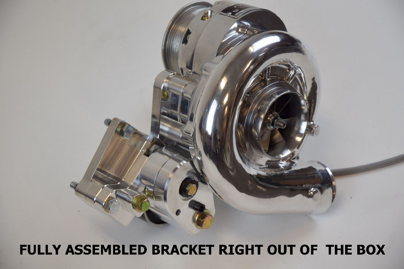 Even better for the consumer is that the entire bracket, pulley and supercharger assembly comes completely preassembled for you. Take it out of the box and bolt it onto the block and cylinder head without having to assemble a thing. Even the mounting bolts are “zip-tied” in the proper holes. It really is a 5-minute proposition to bolt the entire supercharger and bracket assembly on the engine.